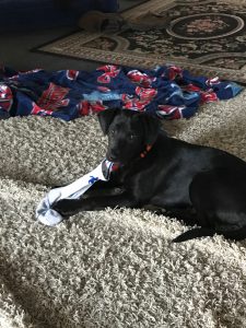Willow chewing Jim’s sock during the show!